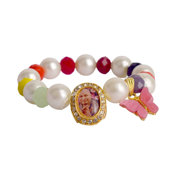 The Multicoloured with Butterfly Charm Guruji Swaroop Bracelet is a beautifully handcrafted accessory representing divine charm and spiritual connection. The bracelet features luminous white pearls and vibrant multicoloured beads, highlighted by a symbolic butterfly charm that adds grace and meaning. Perfect for gifting, spiritual gatherings, satsangs, or daily wear, this bracelet blends devotion with elegance.