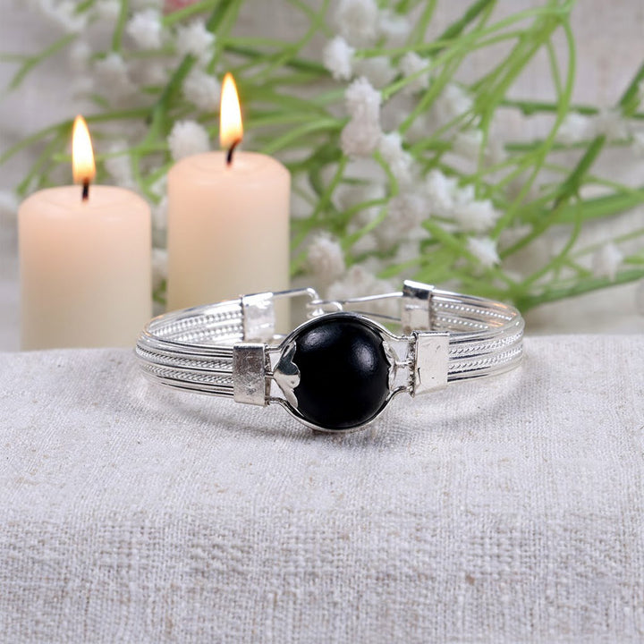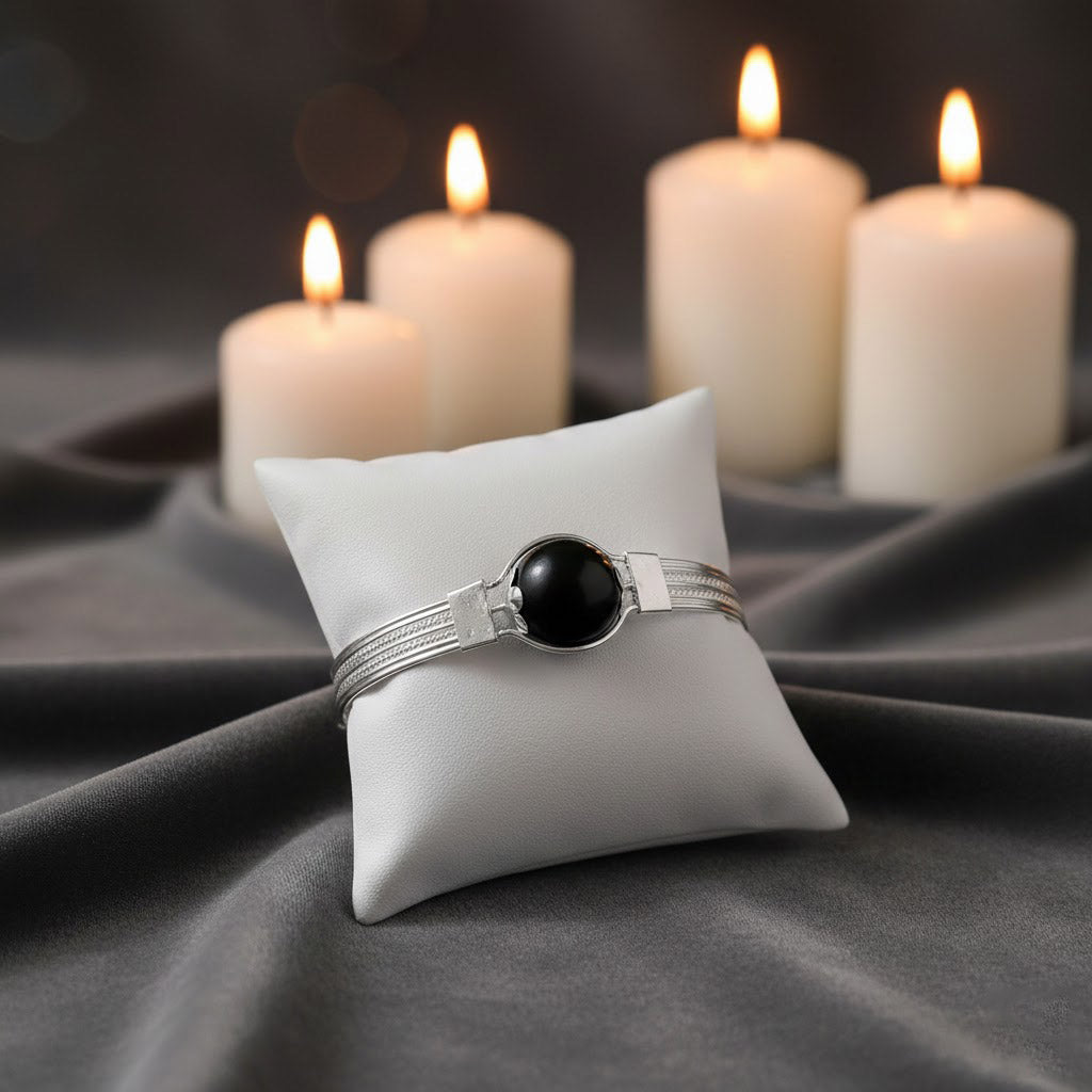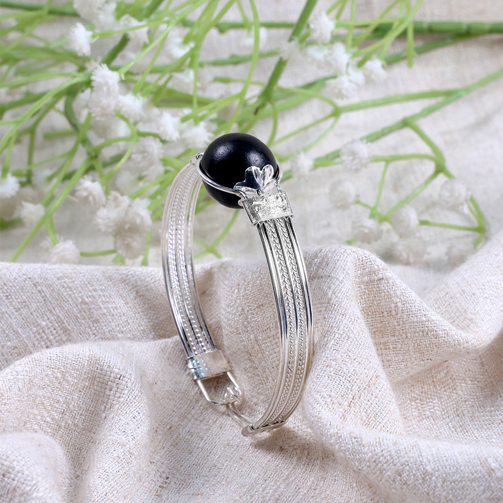 Karungali Silver Plated Kada | Ebony Wood Kada | Authentic Karungali Kada | Spiritual Protection Kada | Karungali Kada for Men | Karungali Kada for Women | Silver Plated Spiritual Kada | Ebony Wood Kada Online | Karungali Kada Price | Protective Spiritual Kada