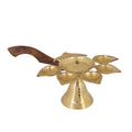 • Item Name: Brass Panch Arti Diya with Wooden Handle