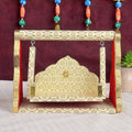 Its singhasan-style cradle provides a sacred throne for Kanha, perfect for Janmashtami, daily rituals, or devotional décor. Whether as a spiritual gift or for your own temple, this jhula beautifully merges tradition with divine elegance.