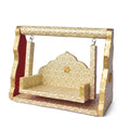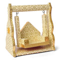 Printed Design Jhula – White & Gold Wooden Swing for Laddu Gopal