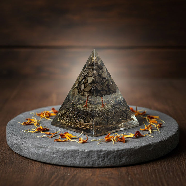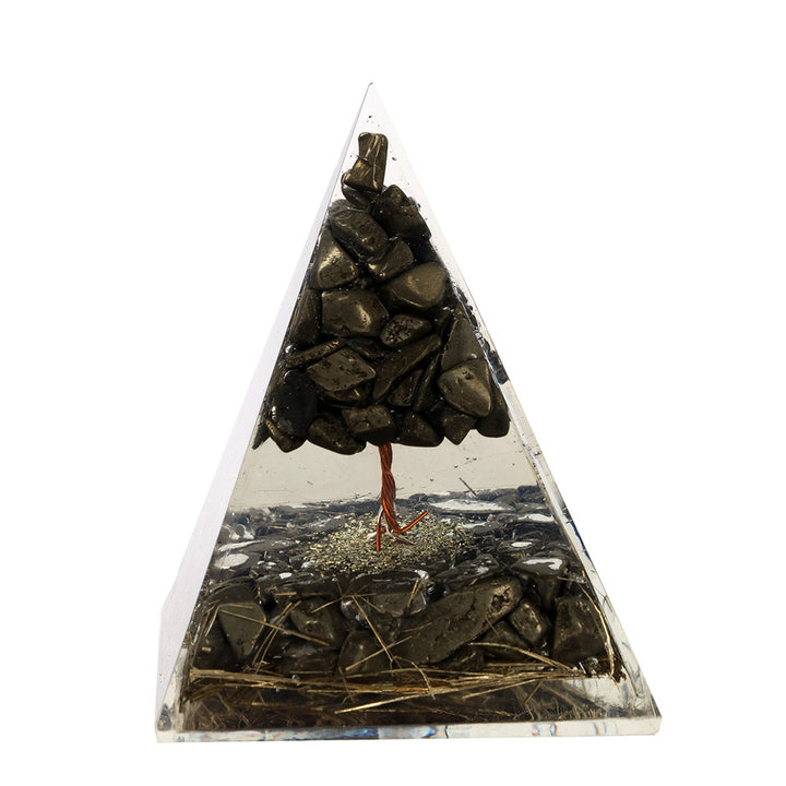 Pyrite is known as the stone of wealth and protection, helping to attract financial opportunities and shield against negative energies. The tree formation inside the pyramid adds a symbolic touch of growth and strength, making it a meaningful spiritual tool for home, office, or meditation spaces.