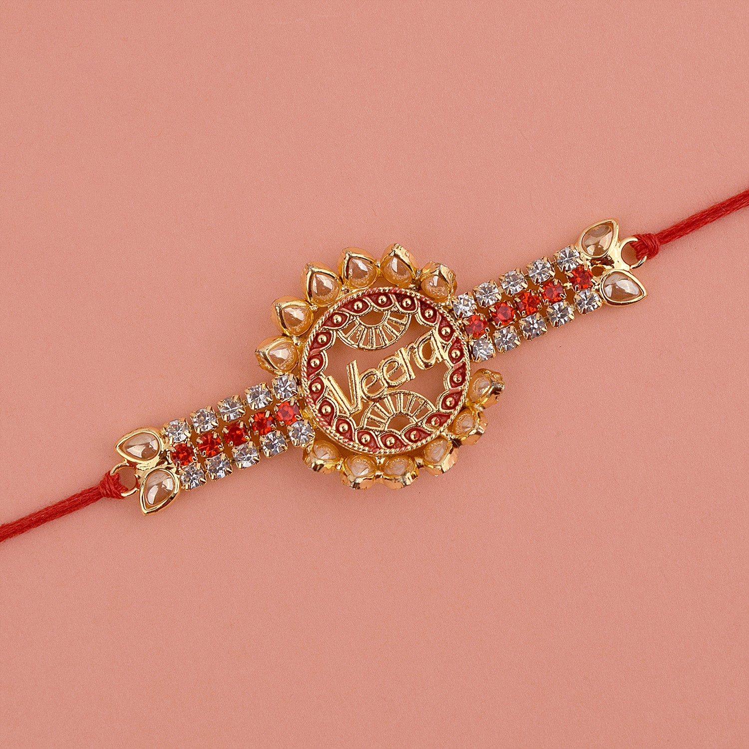 Kundan Rakhi: Bedecked with dazzling Kundan stones, our kundan rakhi collection epitomizes elegance and opulence. Celebrate the cherished moments and memories shared with your siblings.