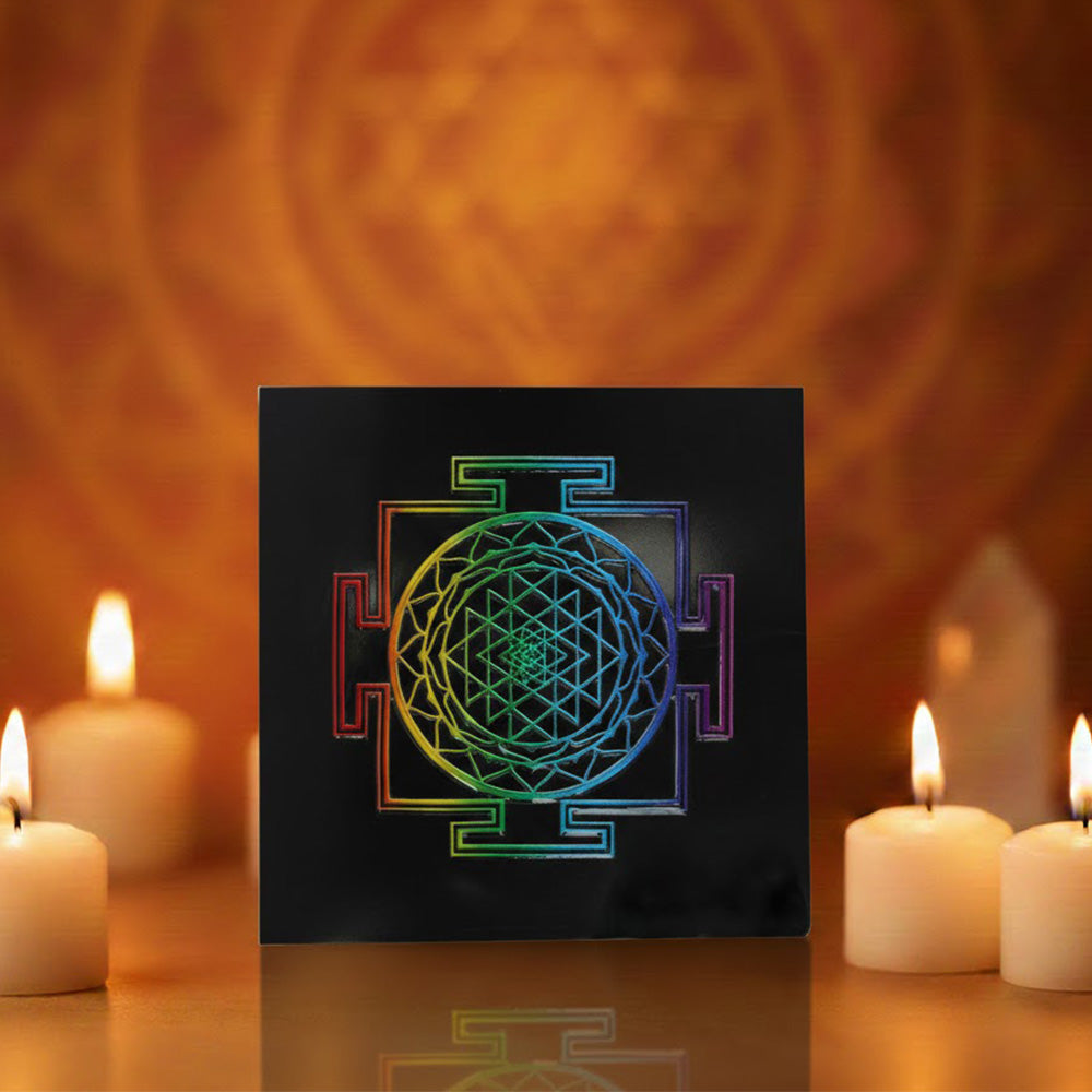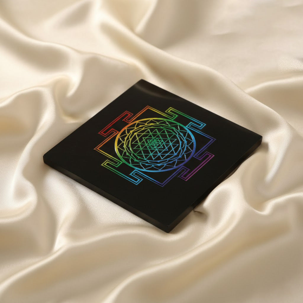 • Design:Β Shree Yantra Engraved on Polished Black Obsidian Plate