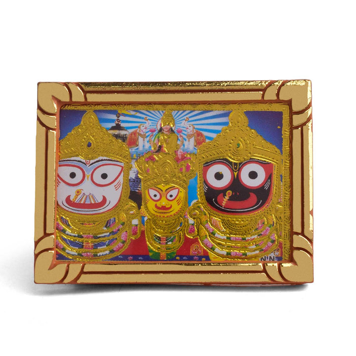 About the Product: Bring home the divine essence of Puri Dham with this compact Lord Jagannath frame Car Dashboard Idol – Small. Crafted with a vibrant printed artwork of Lord Jagannath, Balabhadra, and Subhadra, this idol is set within a durable wooden frame. Perfect for car dashboards or small temple spaces, it invites divine blessings, spiritual presence, and joyful vibrations into your daily journey.