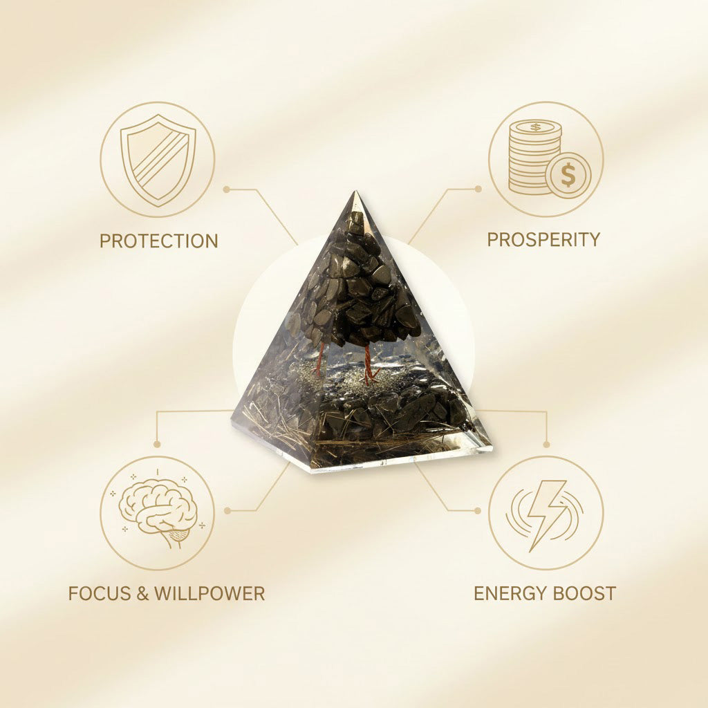 In Vastu and Feng Shui, the 7 Horses symbolize speed, strength, and continuous success, helping overcome obstacles and drive progress in career and business. Pyrite, known as the Stone of Wealth and Protection, enhances confidence, prosperity, and positive energy. The pyramid shape helps focus and magnify energy, making this combo ideal for homes, offices, and business spaces seeking growth and stability.