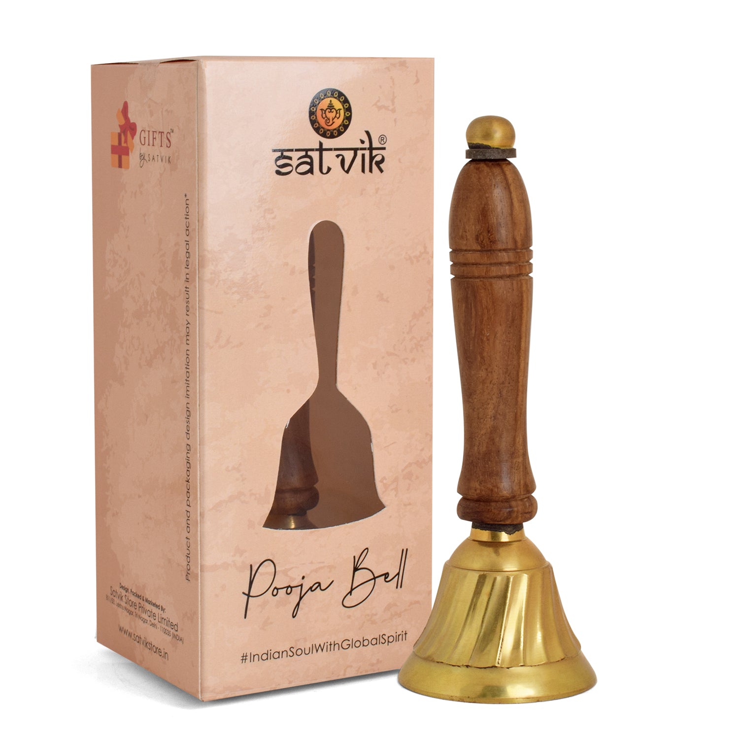 Buy Wooden Handle Brass Hand Held Puja Bell Online | Satvikstore.in – satvikstore.in