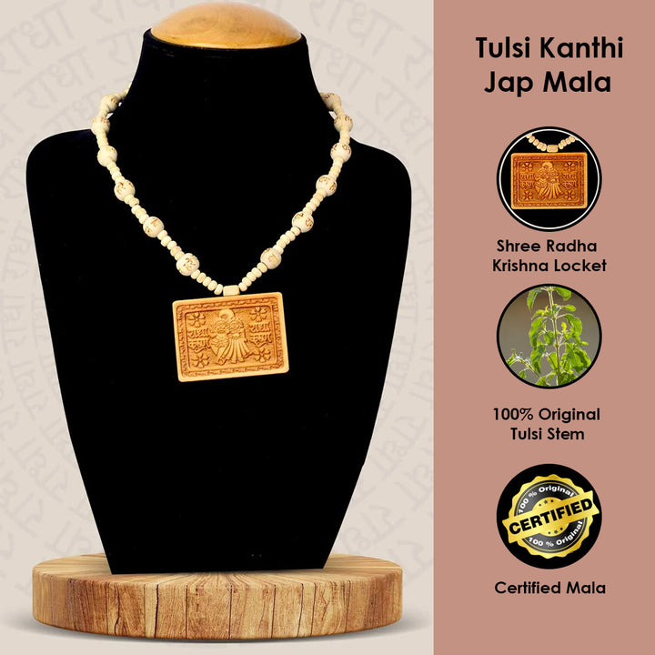 Radha Krishna Wooden Locket | Radha Krishna Mala | Wooden Jaap Mala with Radha Krishna | Krishna Radha Devotional Necklace | Radha Krishna Bhakti Mala | Chanting Beads for Krishna Devotees | Radha Krishna Japa Mala | Radhe Krishna Spiritual Mala | Wooden Bhakti Mala | Radha Krishna Beaded Necklace